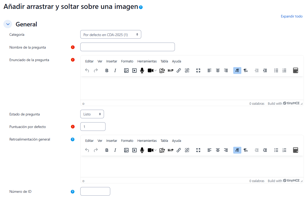 - Se puede poner un texto en "Realimentación general" que puede leer el estudiante una vez finalizado el cuestionario.