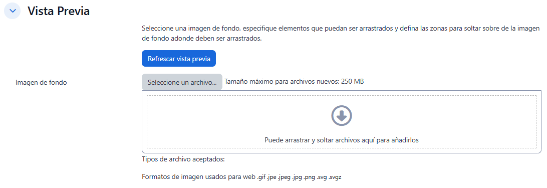 - En la sección Vista Previa, dentro del espacio Imagen de fondo, suba una imagen la cual será mostrada como parte del enunciado de la pregunta.
