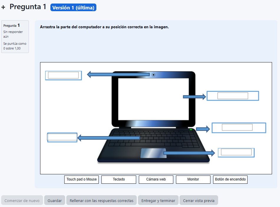 Pregunta en la que el estudiante debe arrastrar y colocar textos o imágenes sobre una imagen de fondo, ubicándolos en áreas previamente definidas.