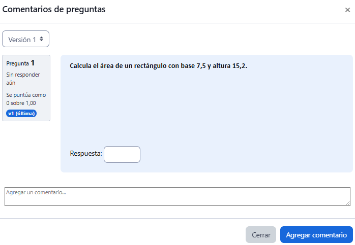 - "Historial": Muestra las modificaciones realizadas a la pregunta y por quién fueron hechas.