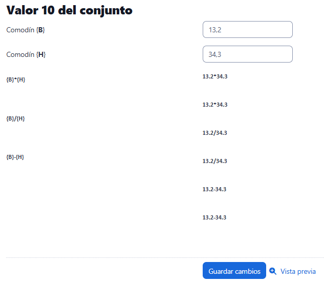 En los cuadros de texto "Comodín" se colocan los valores de las variables que pueden ser modificados de forma manual, y reemplazados en cada una de las posibles respuestas.