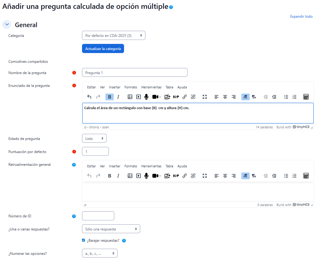 Este tipo de pregunta combina las características de una pregunta calculada con las de opción múltiple, permitiendo que las posibles respuestas se generen dinámicamente mediante fórmulas.