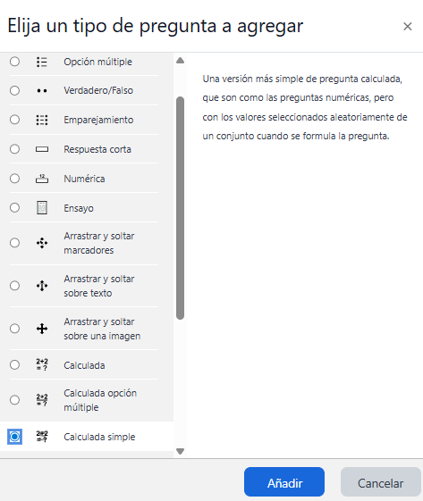 - Seleccionar "Calculada simple" y luego hacer clic en el botón "Añadir".