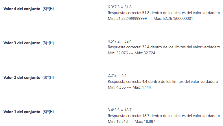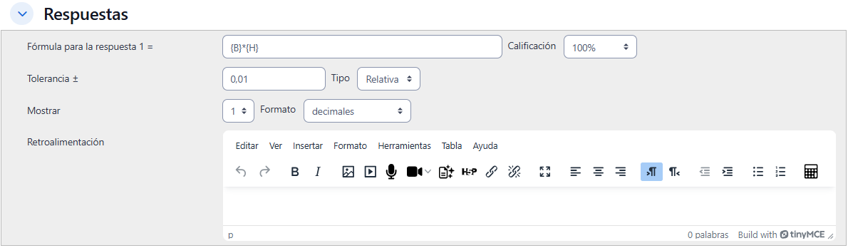 - Dentro del campo "Tolerancia", se determinará un margen de error dentro del cual todas las respuestas son aceptadas como correctas. El valor por defecto de 0.01 relativo significa ±1% de tolerancia.