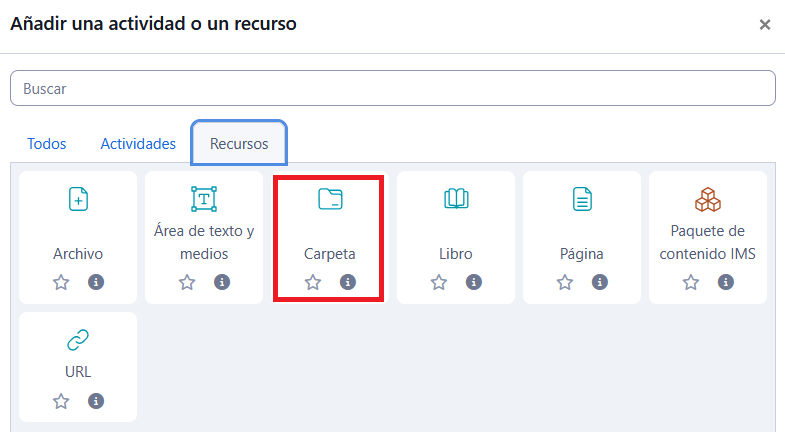 El recurso Carpeta le permite organizar y compartir un conjunto de archivos relacionados en un solo espacio, facilitando a los estudiantes el acceso y la descarga del material.