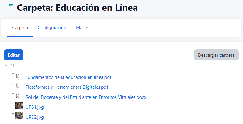 - Si los archivos incluyen imágenes (JPG, PNG, GIF), estas podrán ser visualizadas directamente por los estudiantes al abrir la carpeta.