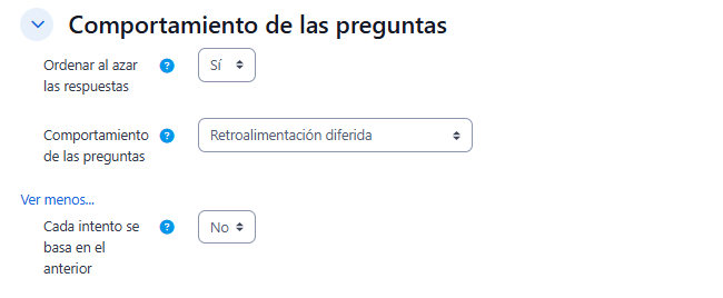 El profesor puede permitir que el cuestionario se intente resolver varias veces, con las preguntas ordenadas o seleccionadas aleatoriamente del banco de preguntas.