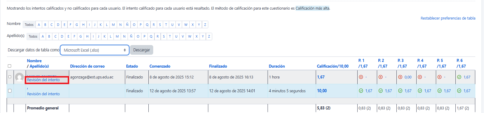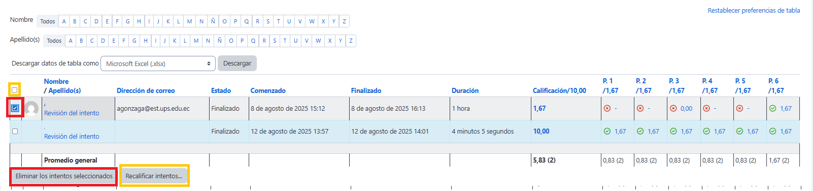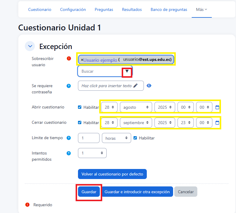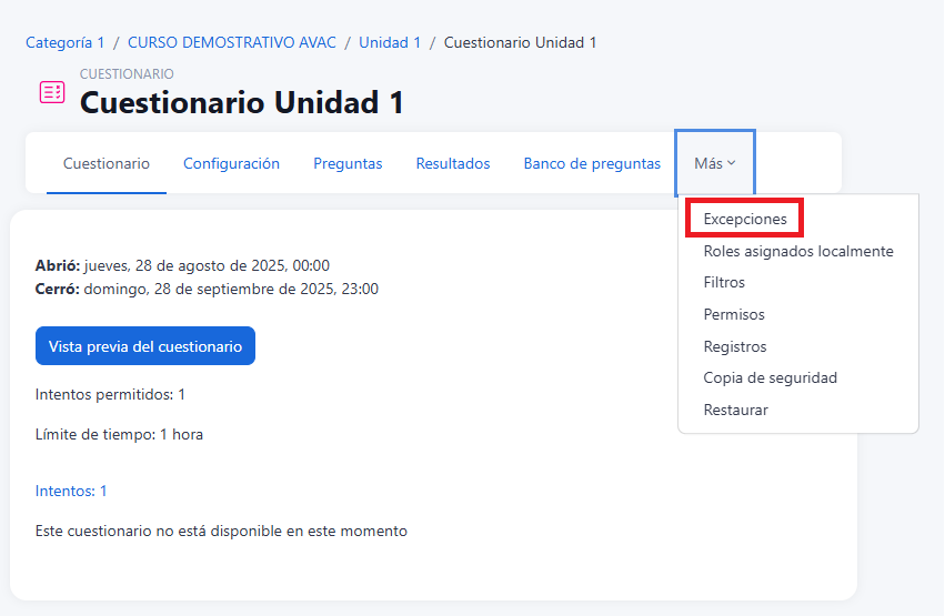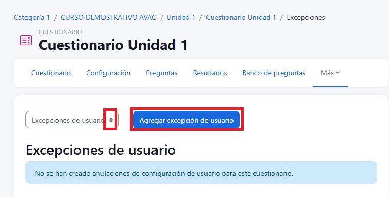 Nota: Con estos dos tipos de excepciones, usted puede gestionar de manera flexible los intentos de los cuestionarios, garantizando un control adecuado sobre las evaluaciones.