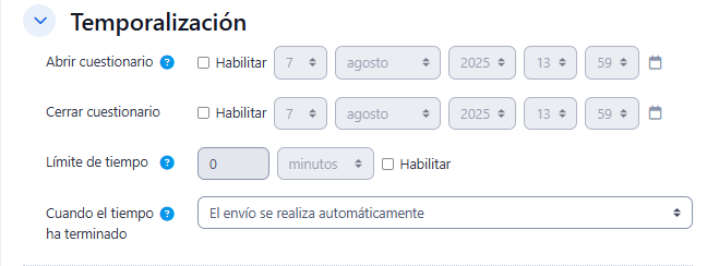 Se puede establecer un tiempo límite para resolver el cuestionario.