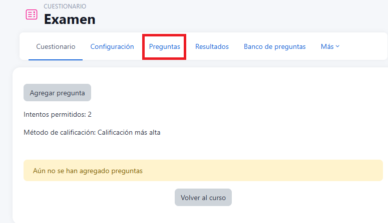 NOTA: Si un estudiante realizó su participación en la actividad cuestionario, no se podrá añadir ni quitar preguntas, sólo modificarlas.