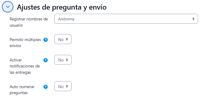 - Especificar en "Registrar nombres de usuario" si las respuestas van a ser anónimas o no.