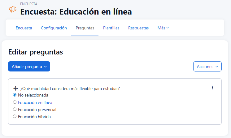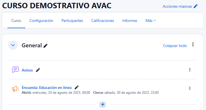 La Encuesta en el AVAC permite recolectar opiniones, información y retroalimentación de los estudiantes de manera estructurada. Puede ser útil para: