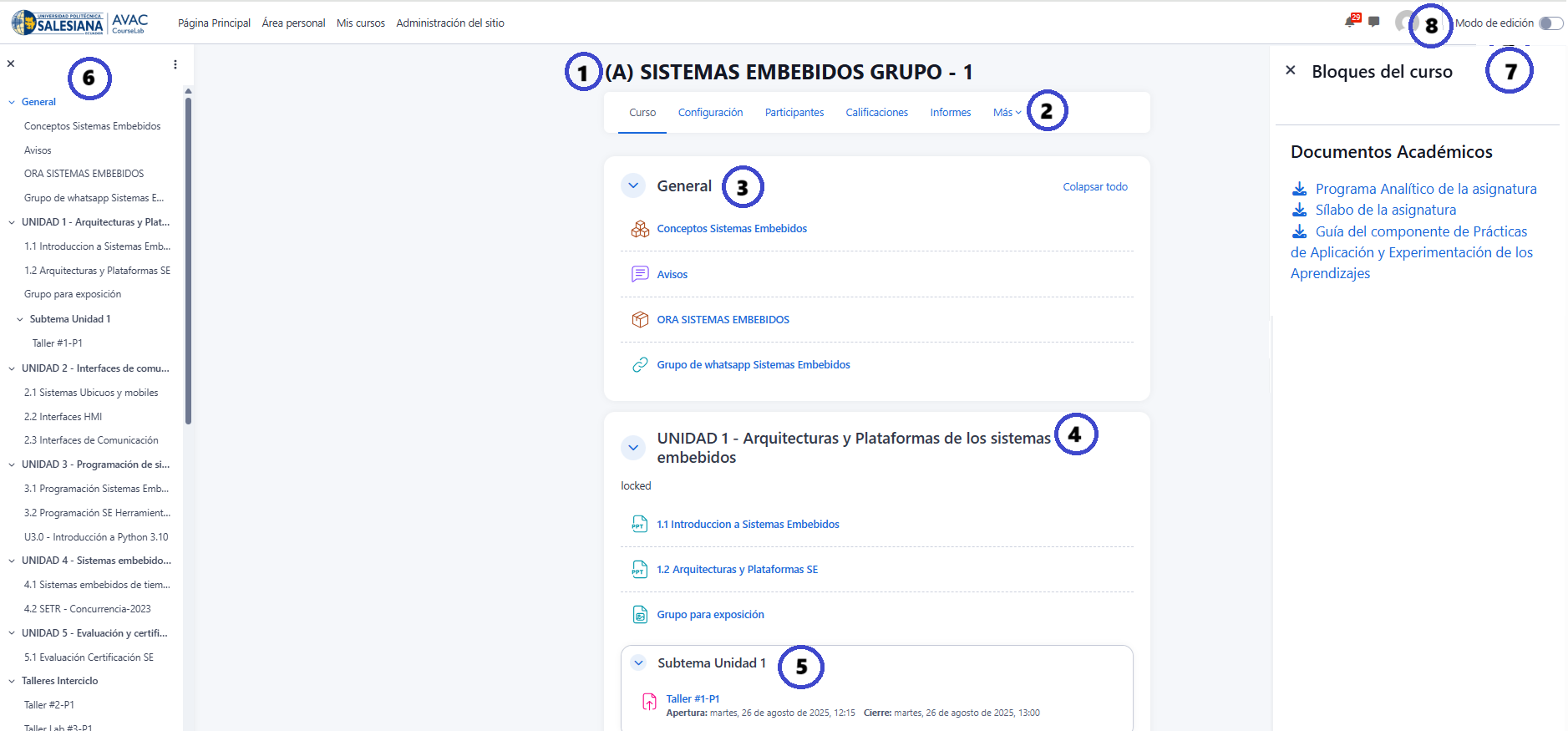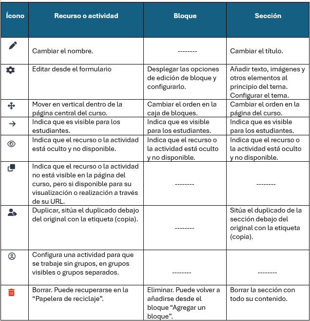 Podemos mover, agregar y eliminar bloques para adaptarlos a las necesidades del curso. Para ello, es necesario activar el Modo de edición.