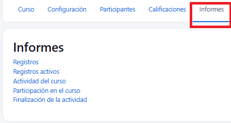 Entre los reportes que podemos obtener del curso se dispone de los siguientes: