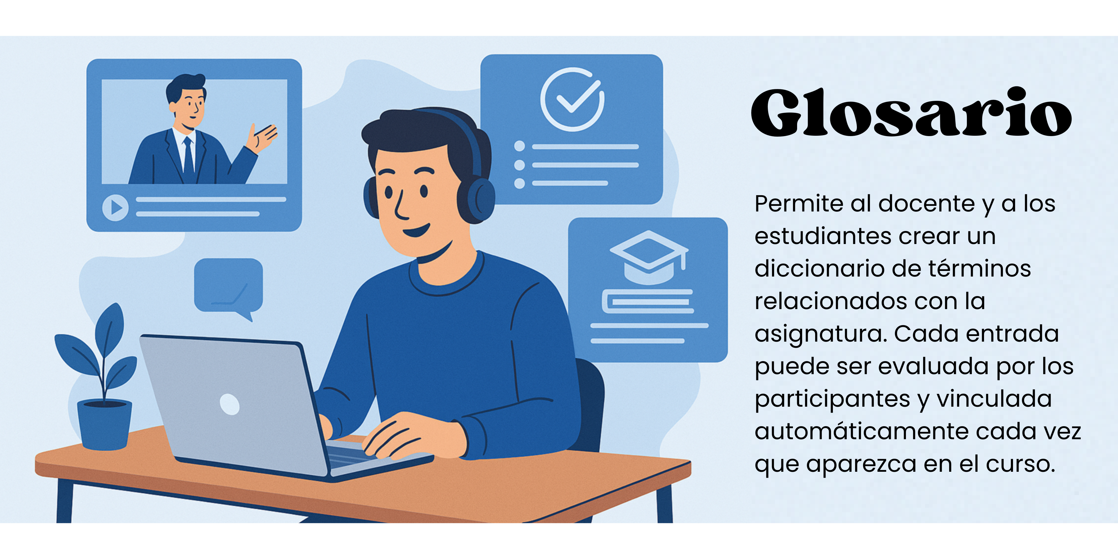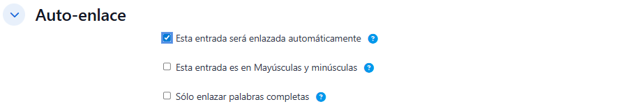 - "Enlace automático a las entradas del glosario": Conecta automáticamente los términos del glosario en todo el curso para facilitar referencias.
