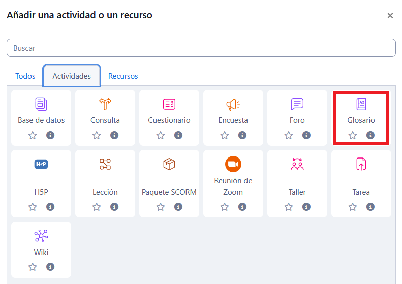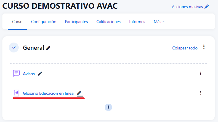 - Seleccionar la Actividad "Glosario".