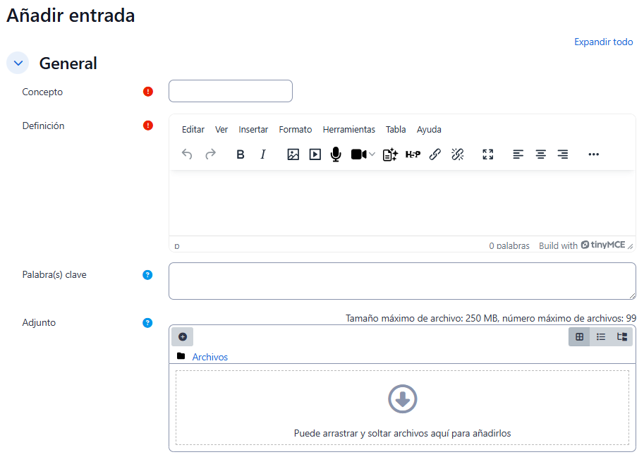 - "Permitir entradas duplicadas": Determina si se permiten términos repetidos.