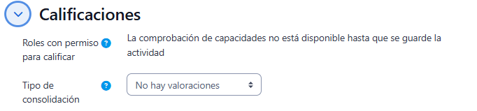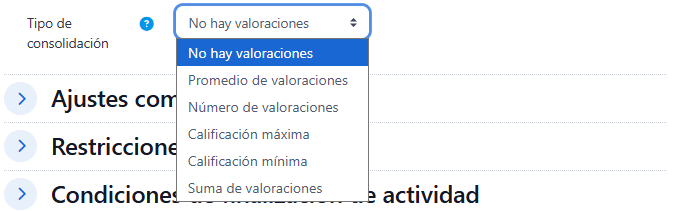 - "Tipo de consolidación": Permite definir cómo se calculará la calificación final de las entradas valoradas. Las opciones disponibles son: