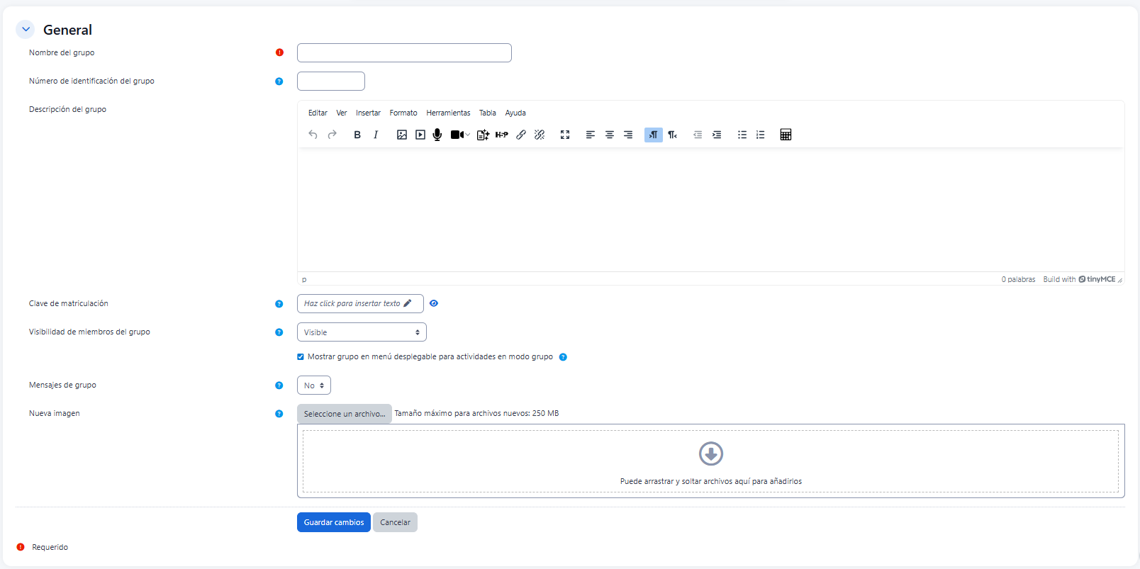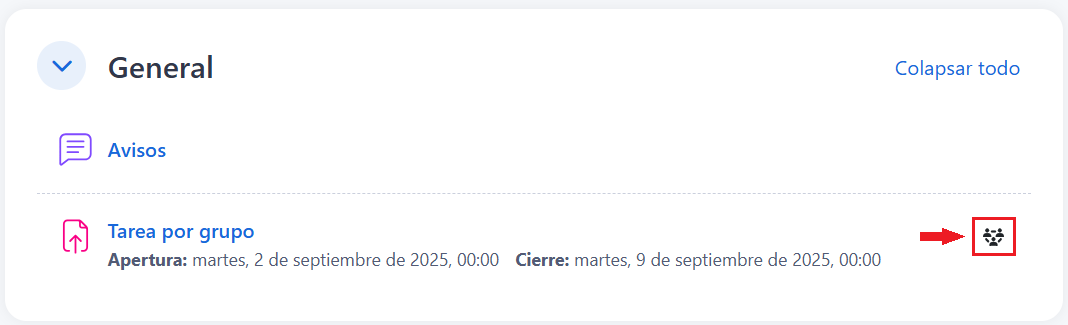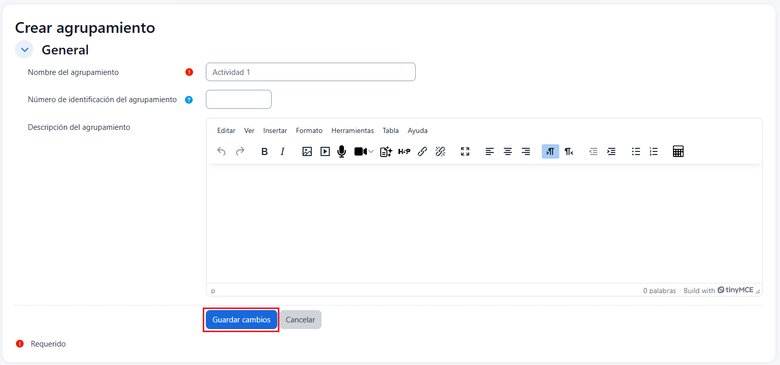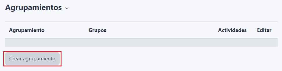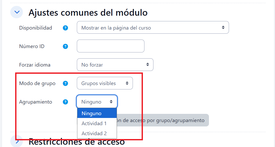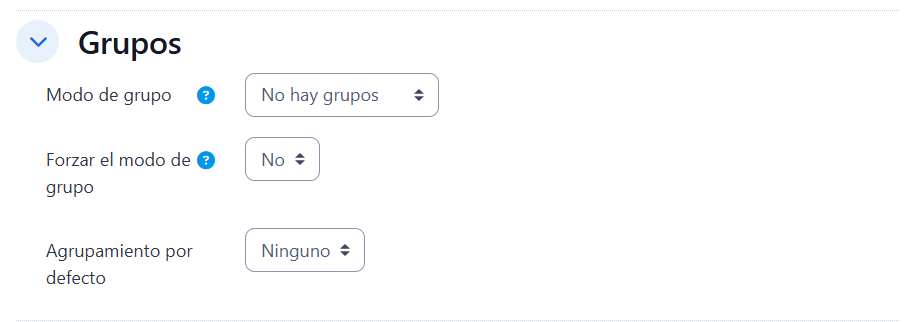 - Agrupamiento por defecto: Todas las actividades creadas son asignados al agrupamiento selecionado. Posteriormente puede cambiarse en la actividad.