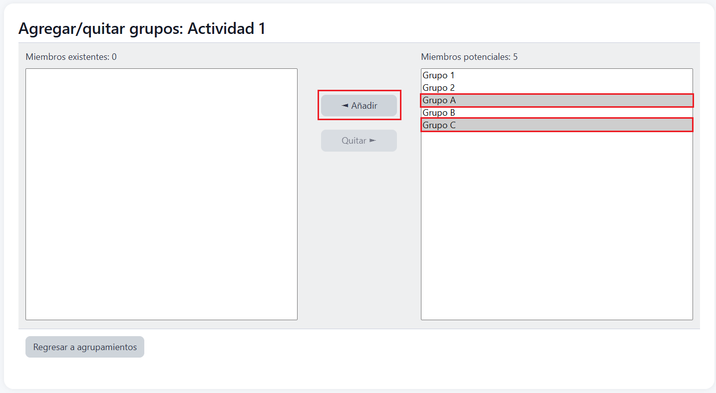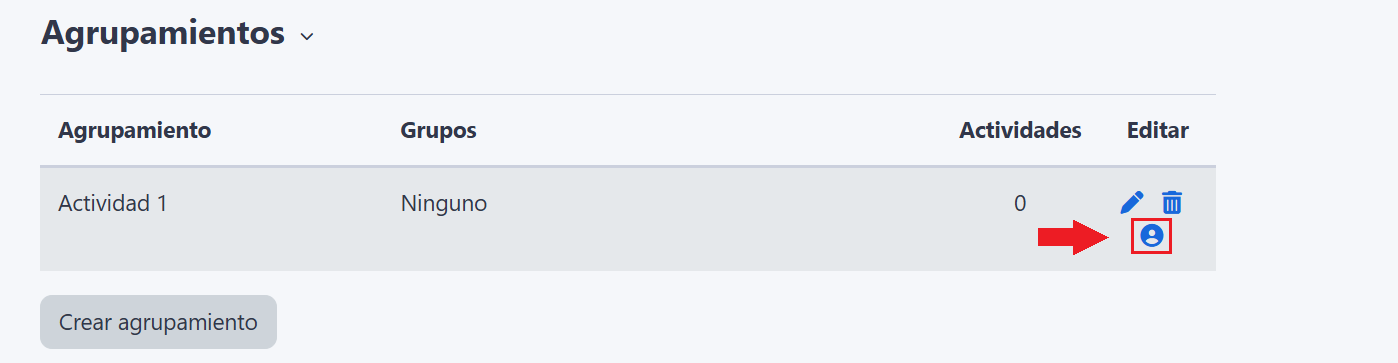 - Para asignar los grupos ya existentes al Agrupamiento, pulse en el siguiente ícono.