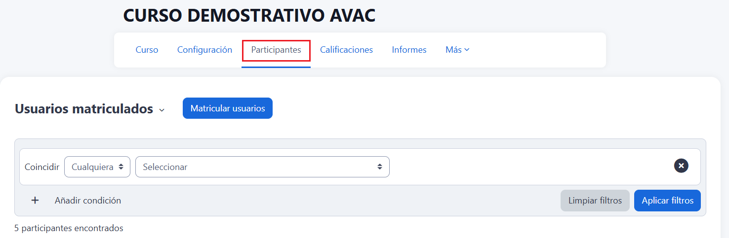 - Clave de Matriculación: Permite acceder al curso, solo a aquellos que conocen la clave.