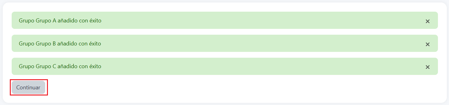 - Finalmente, debe pulsar en Continuar y visualizará todos los grupos creados