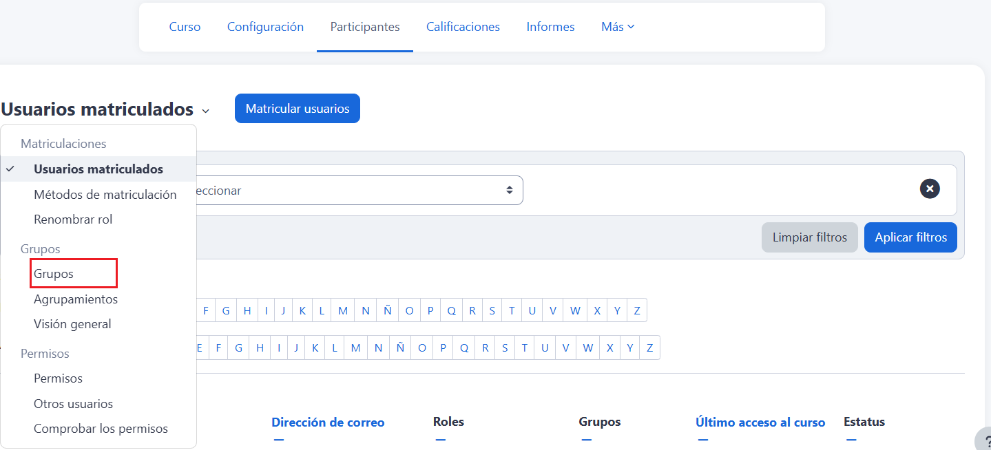 Organiza a los estudiantes en grupos dentro del curso o en determinadas actividades.