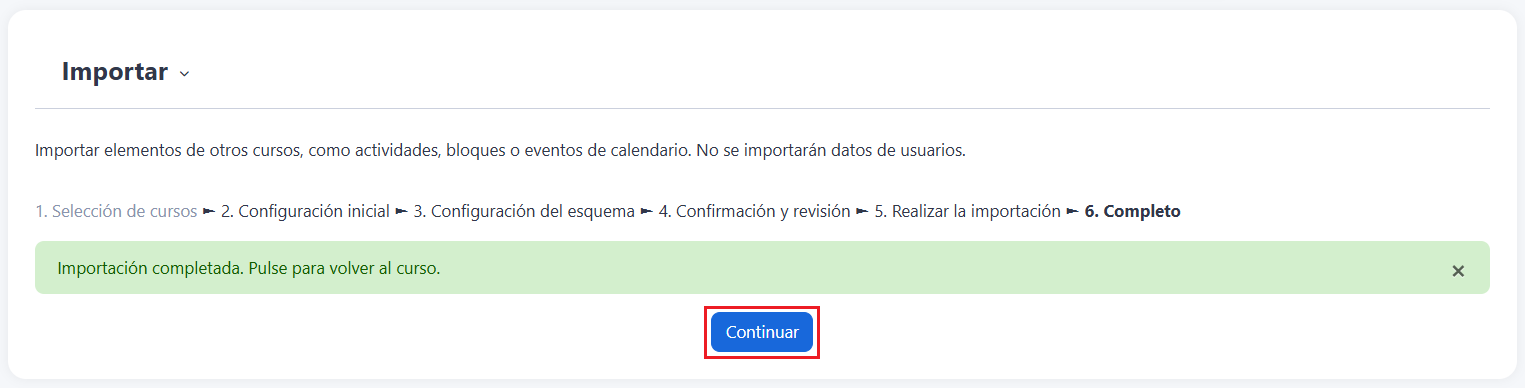 Permite importar contenido de un curso a otro dentro de la misma plataforma.