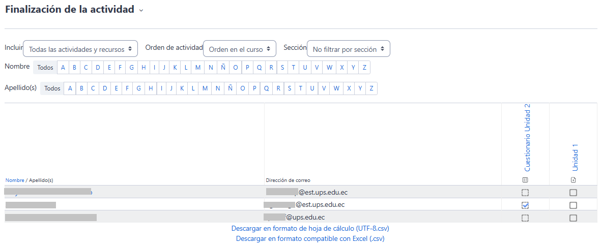 - Muestra qué estudiantes han cumplido con los criterios de finalización establecidos en cada actividad o recurso.
