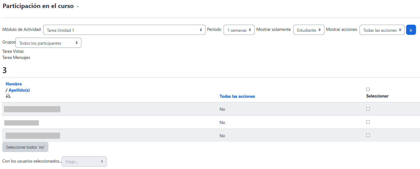 - Le ofrece un resumen de las acciones realizadas en cada recurso o actividad, indicando el nivel de participación.