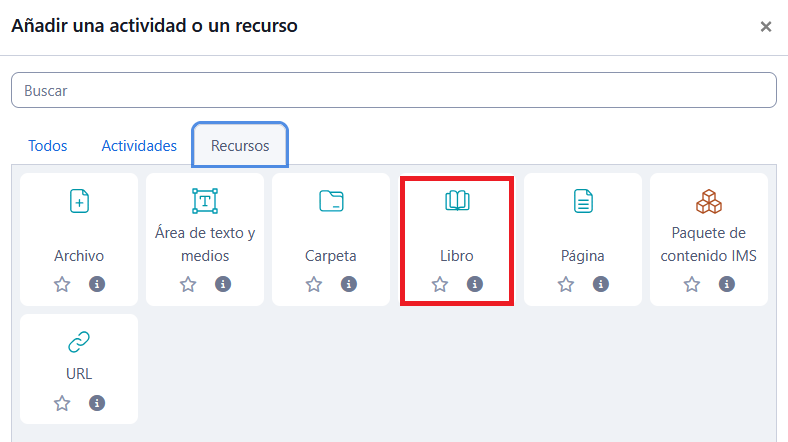 El recurso Libro permite crear un conjunto de páginas siguiendo un orden jerárquico determinada con capítulos y subcapítulos.