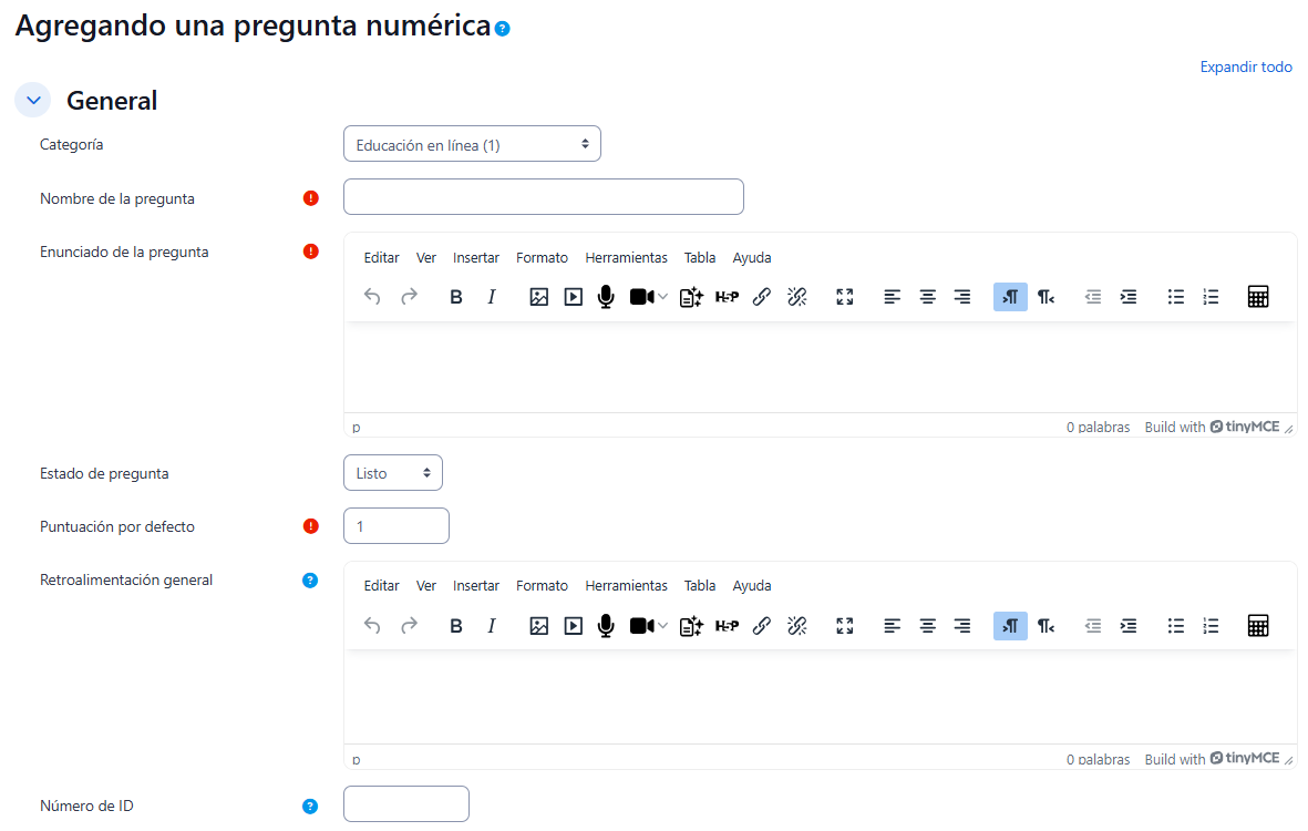 - Seleccionar la "Categoría" a la que pertenece la pregunta.