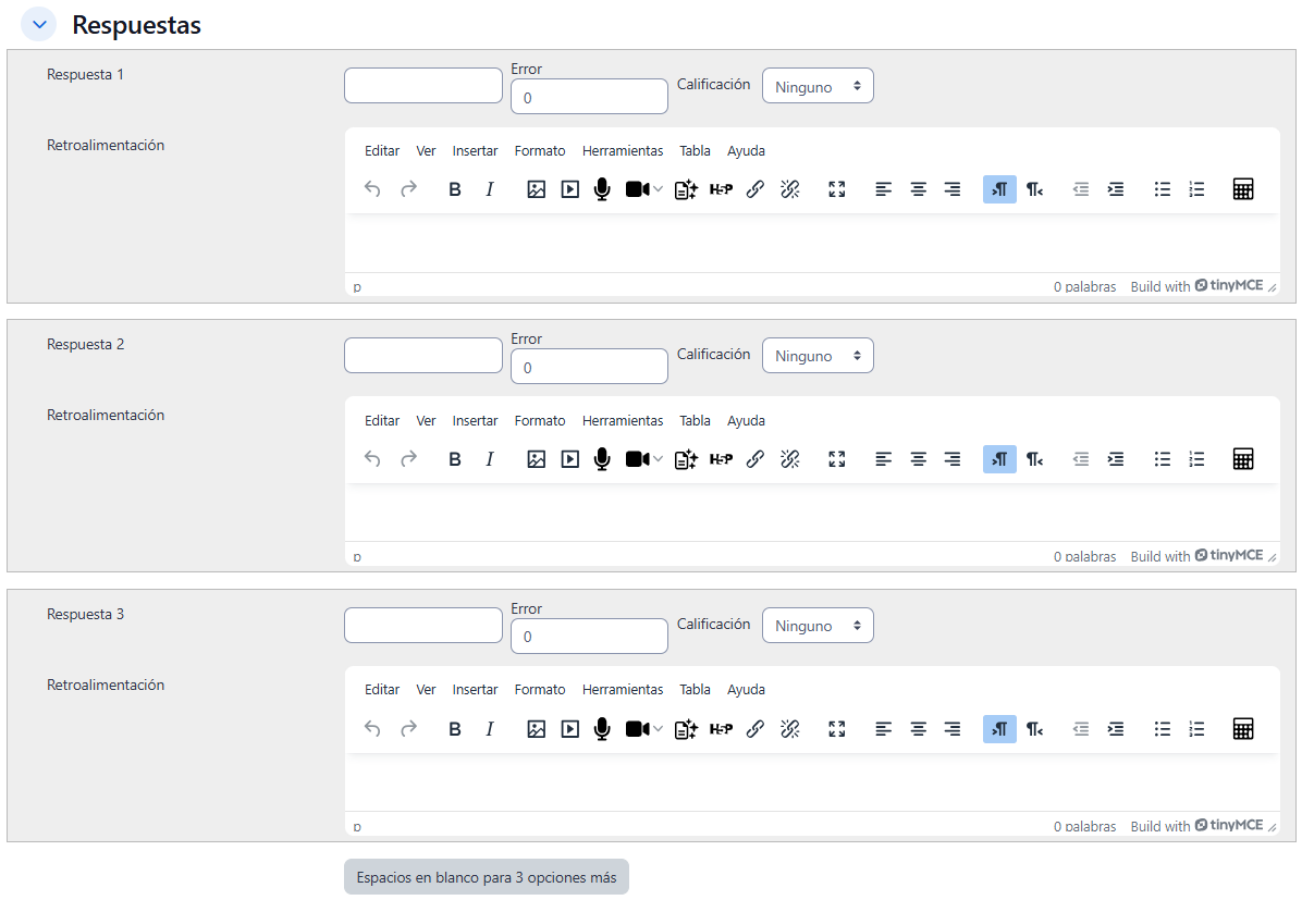 - Añadir una "Realimentación" para la respuesta si se desea.
