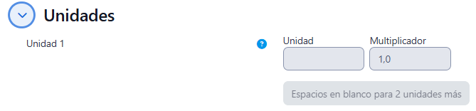 Establece distintas unidades de medida para la respuesta, en este bloque se configura las unidades a utilizar y el multiplicador que es el factor por el que la respuesta numérica correcta se multiplica.