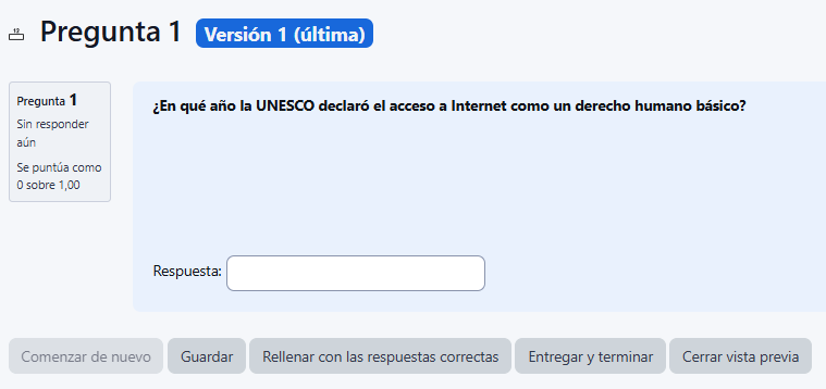Pregunta en la que se responde con un valor numérico. El profesor puede establecer un intervalo de tolerancia para la respuesta dada.