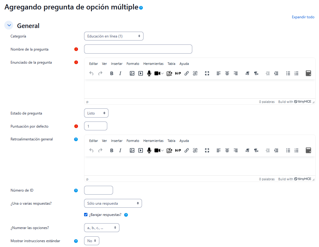 - "¿Una o varias respuestas? ", escoja si la pregunta tiene una o varias respuestas válidas.