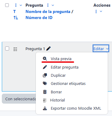 Para verificar que su pregunta se encuentre bien estructurada en Acciones de la pregunta de clic en Vista Previa