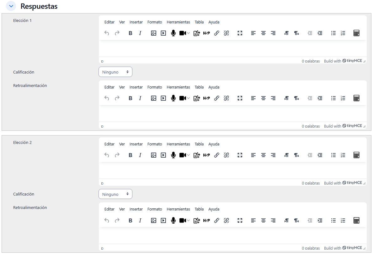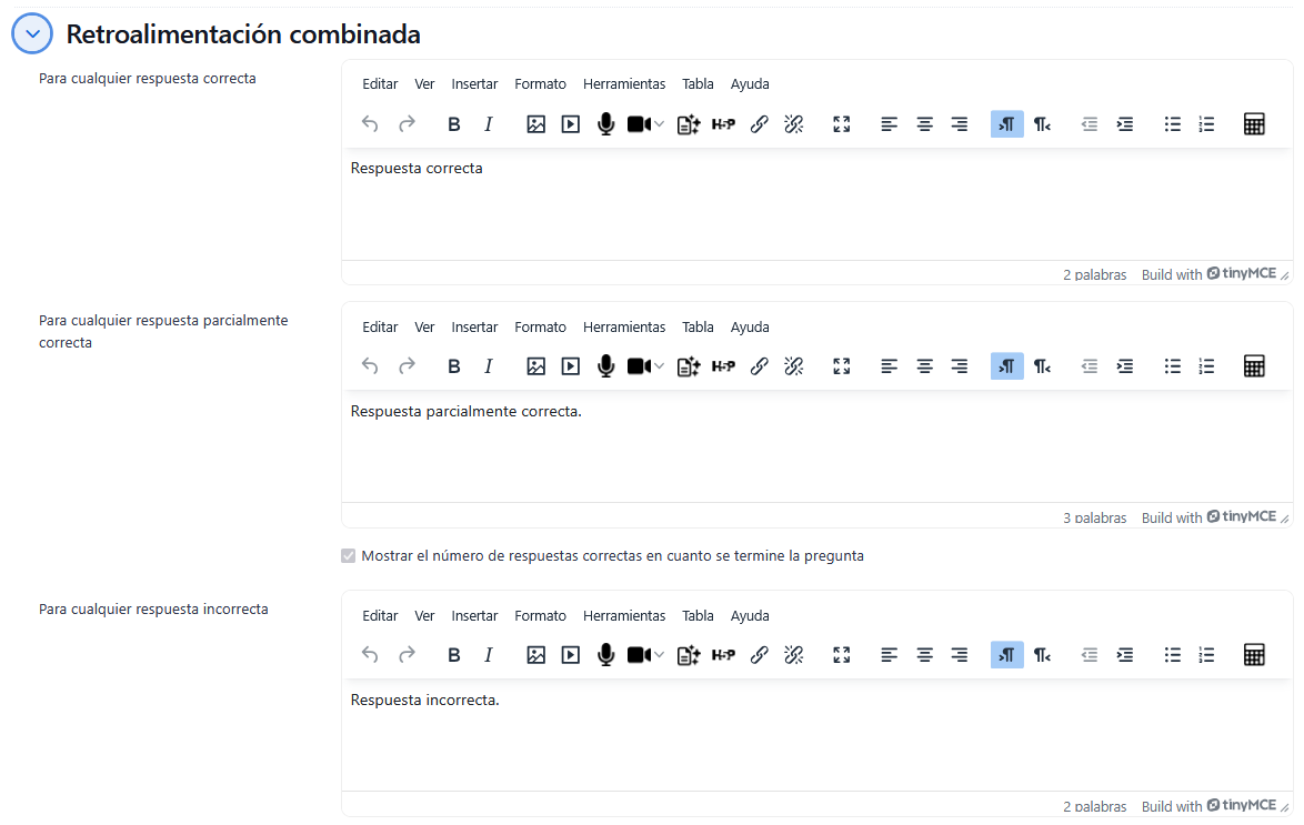 - Se puede incorporar una "Realimentación" por cada respuesta.