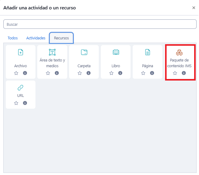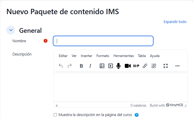 Un paquete de contenido IMS es una colección de archivos que se empaquetan de acuerdo con un estándar acordado para que puedan reutilizarse en diferentes sistemas. El módulo de paquete de contenido IMS permite que dichos paquetes de contenido se carguen como un archivo zip y se añadan a un curso como recurso.