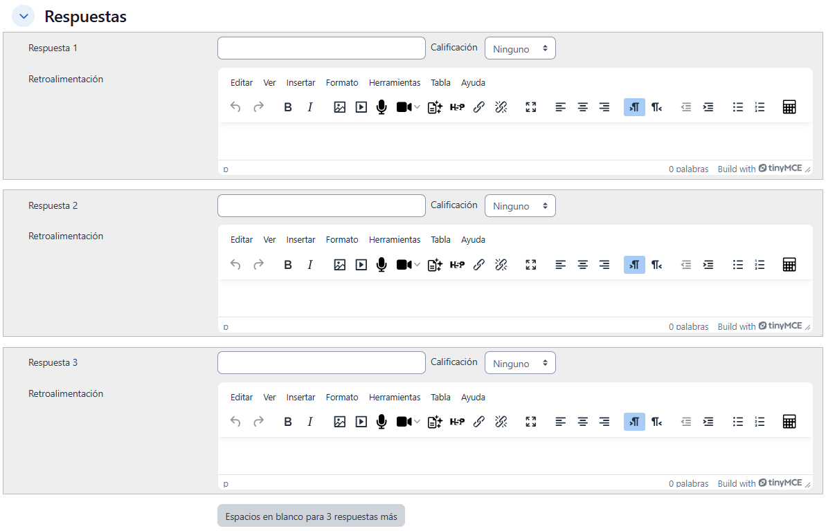 - Añadir la posible "Realimentación" para cada respuesta.