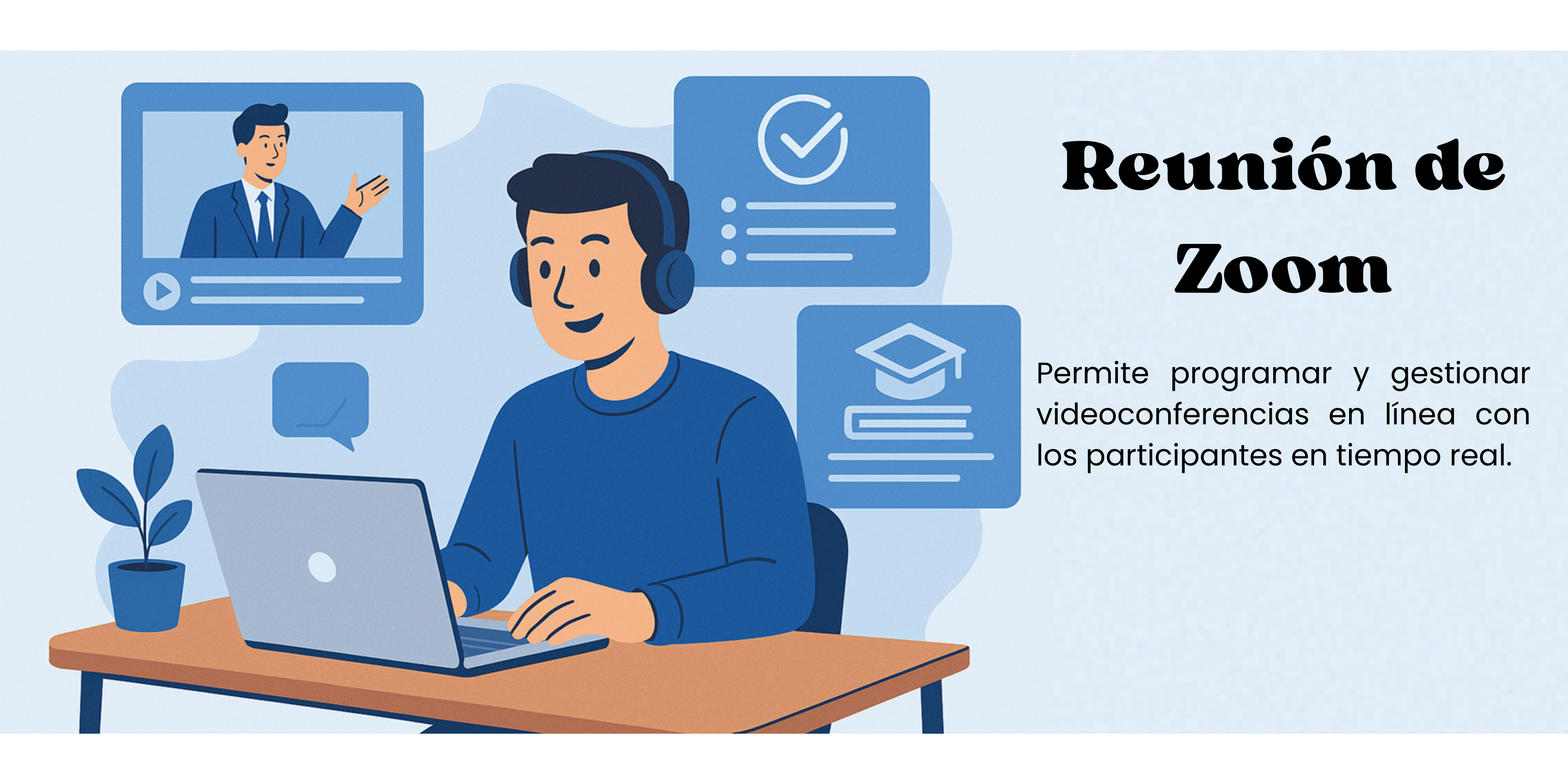 Permite programar, gestionar y acceder a videoconferencias directamente desde la plataforma, facilitando la interacción sincrónica entre participantes.
