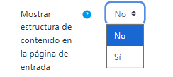 - Mostrar estructura del curso en la página de entrada, si se activa, la tabla de contenidos se muestra en la página de resumen del SCORM.