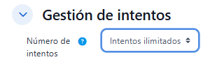 - "Número de intentos", define el número de intentos permitidos a los estudiantes.