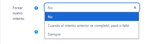 - "Forzar finalización", si se activa esta opción todos los intentos que se inician se guardan como "Completados", es útil si no hace esto por sí mismo o no funciona correctamente.