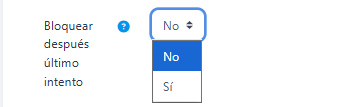 - "Bloquear después último intento", impide realizar más intentos después de realizar todos los intentos asignados por el profesor.