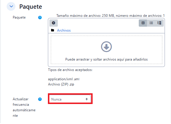 Configuración de la actividad Paquete SCORM.