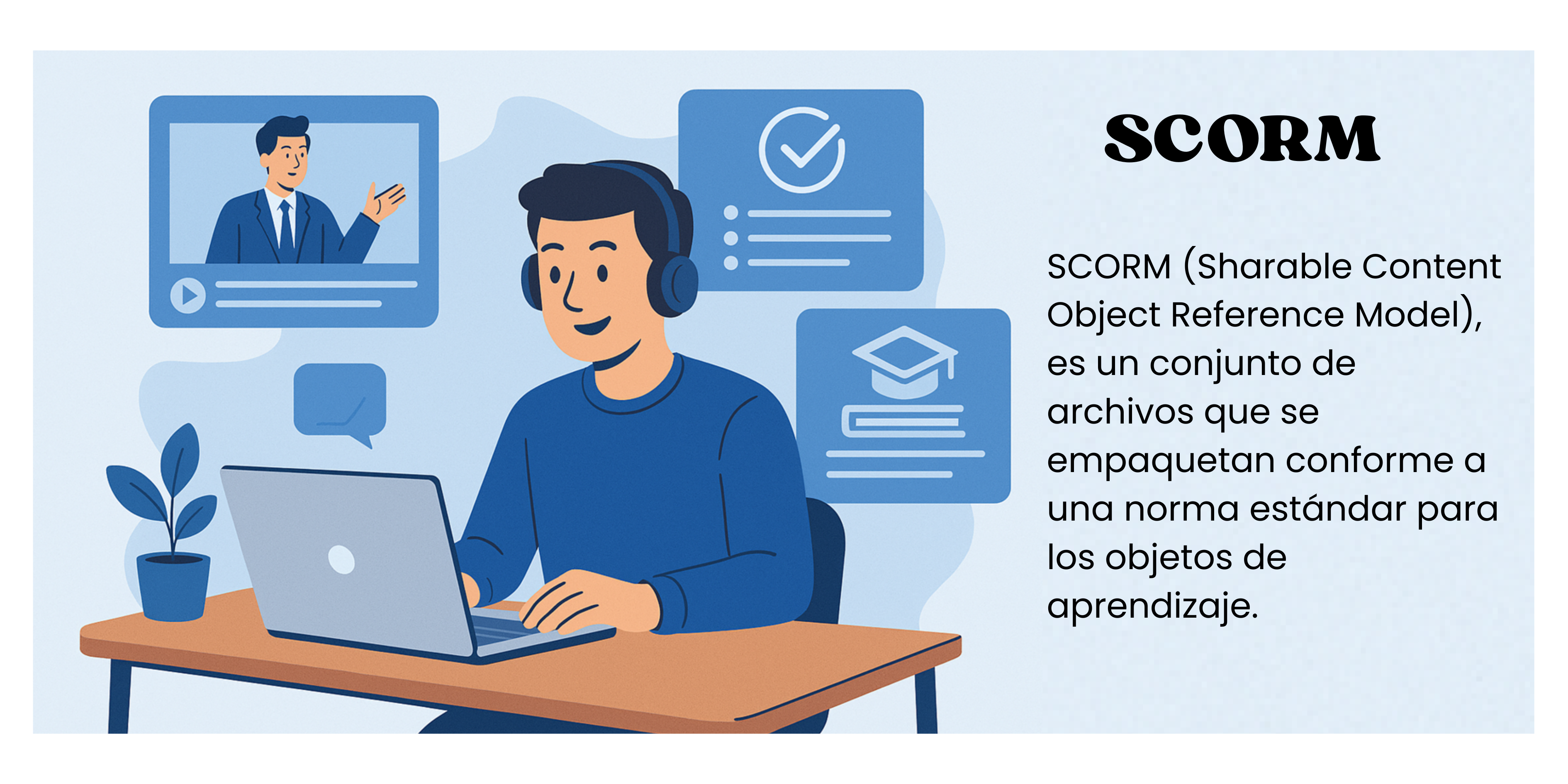 El módulo de actividad SCORM permite cargar y añadir a los cursos paquetes SCORM o AICC como archivos zip. Incluyen una o varias páginas con textos, imágenes, ejercicios o cualquier otro elemento interactivo que funcione en un navegador web.