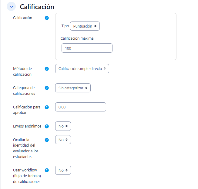 Se puede seleccionar el tipo de Calificación que desea utilizar para esta actividad.