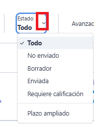 El profesor puede controlar el estado de cada envío y la notificación de la calificación al activar Usar workflow (flujo de trabajo) de calificaciones. Esto permite calificar en fases sucesivas y entregar las calificaciones a los estudiantes de forma simultánea.