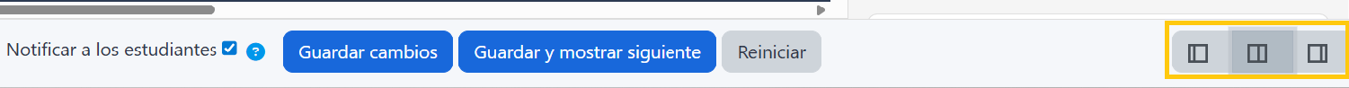 En la parte derecha aparece el panel de revisión con la respuesta del estudiante, que puede verse o descargarse y según el método de calificación configurado, se muestran diferentes opciones para calificar.